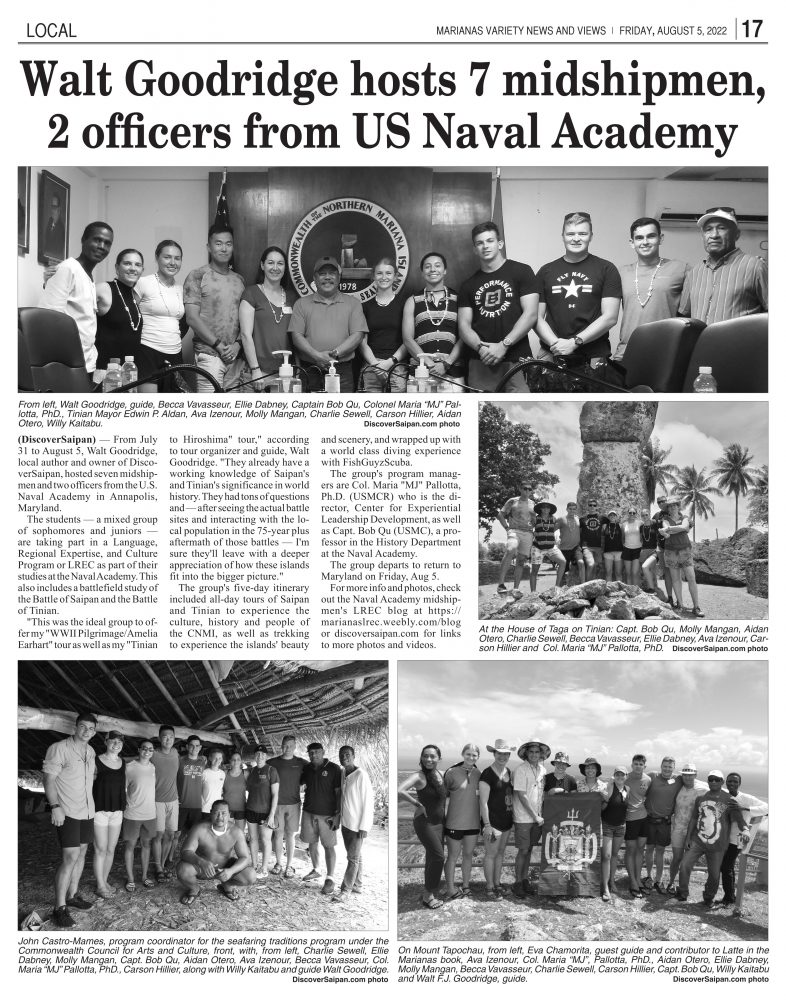 Thanks to Jayvee Vallejera (Saipan Tribune Editor), and Tribune correspondent Aldwin Batusin, as well as Zaldy Dandan (Marianas Variety Editor) for their generosity getting the stories out in time for the team to grab a few copies of the papers while still here on Saipan as souvenirs of their trip!