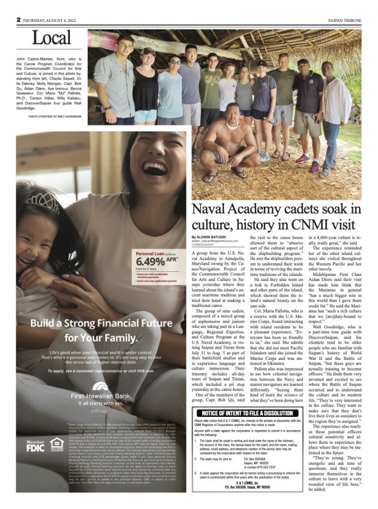 The day prior, we appeared on the front and second pages of The Saipan Tribune! Read online